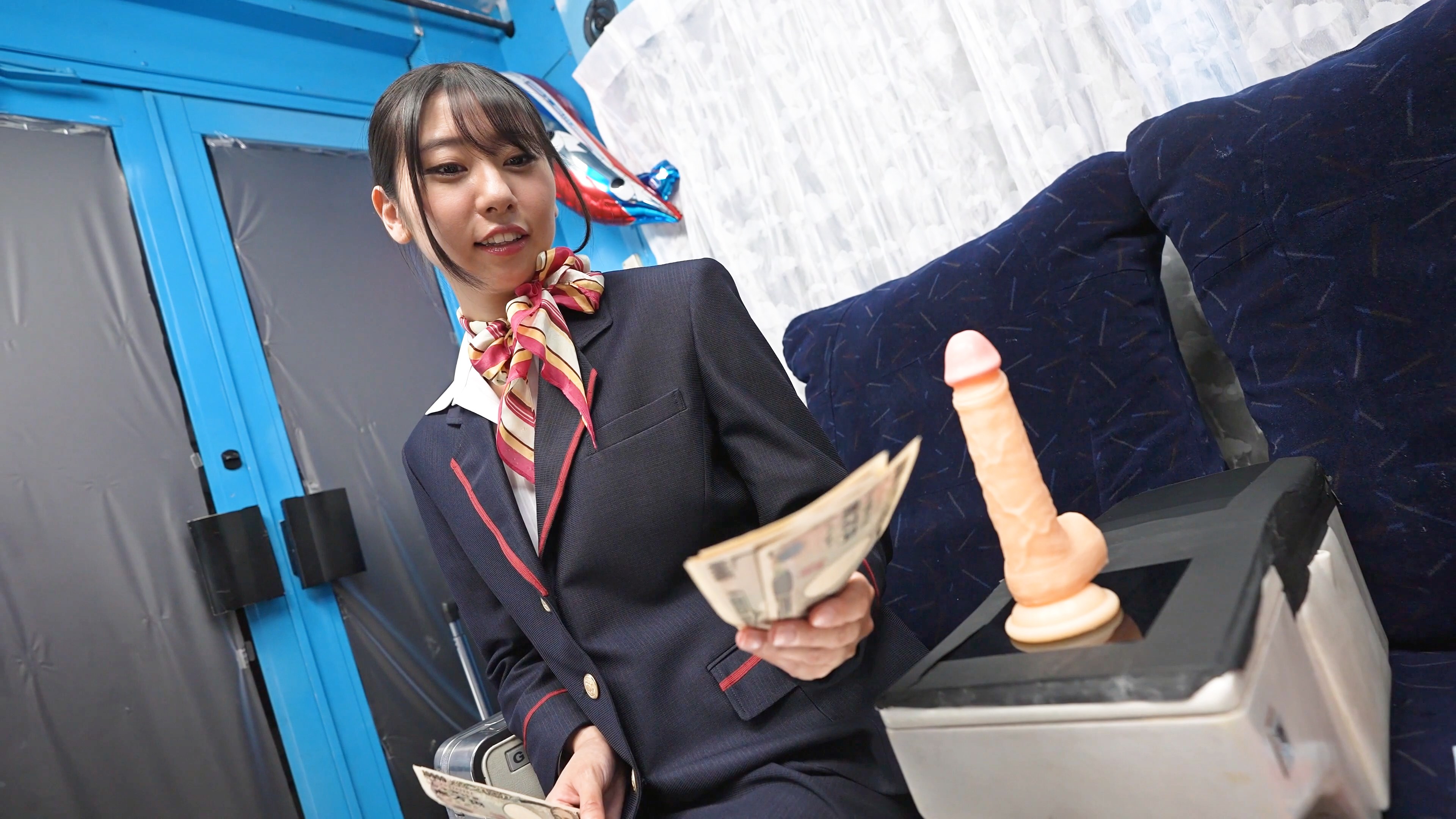 美人CAを2人がかりで羞恥快楽責め! モントリオールから帰国したばかりの国際線CA・葵さんに、スタッフ一同ガマン汁たらしながら凸! へー、福利厚生は充実してるけど1年目だからお賃金があんまり? しばらく彼氏と会えてない? どっちの悩みも解決しましょ! ディルドオナニーしてくれたら賞金進呈! ついでに生チポも試してみてね! いいニオイのパンスト美脚をグググッと開いて、ヒクつく美マンへ庶民のデカチンズプププッ! イキ潮吹いて期待以上のガクイキ見せてくれた葵さんに、ありがとうのジェットピストン! みんなで口からザーメン噴くまでドプドプ中出し! 「彼氏のよりずっとイィッ!」いただきました!